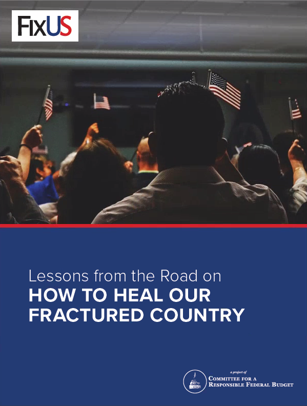 FixUS seeks to better understand the root causes of our nation’s growing divisions and deteriorating political system, to work with others to bring attention to these issues and the need to fix them, and to build support for necessary changes. We are part of a coalition of individuals and organizations with diverse perspectives, united in a shared concern over the state of our country, and committed to make healing our fractured nation and fixing the system a top national priority.